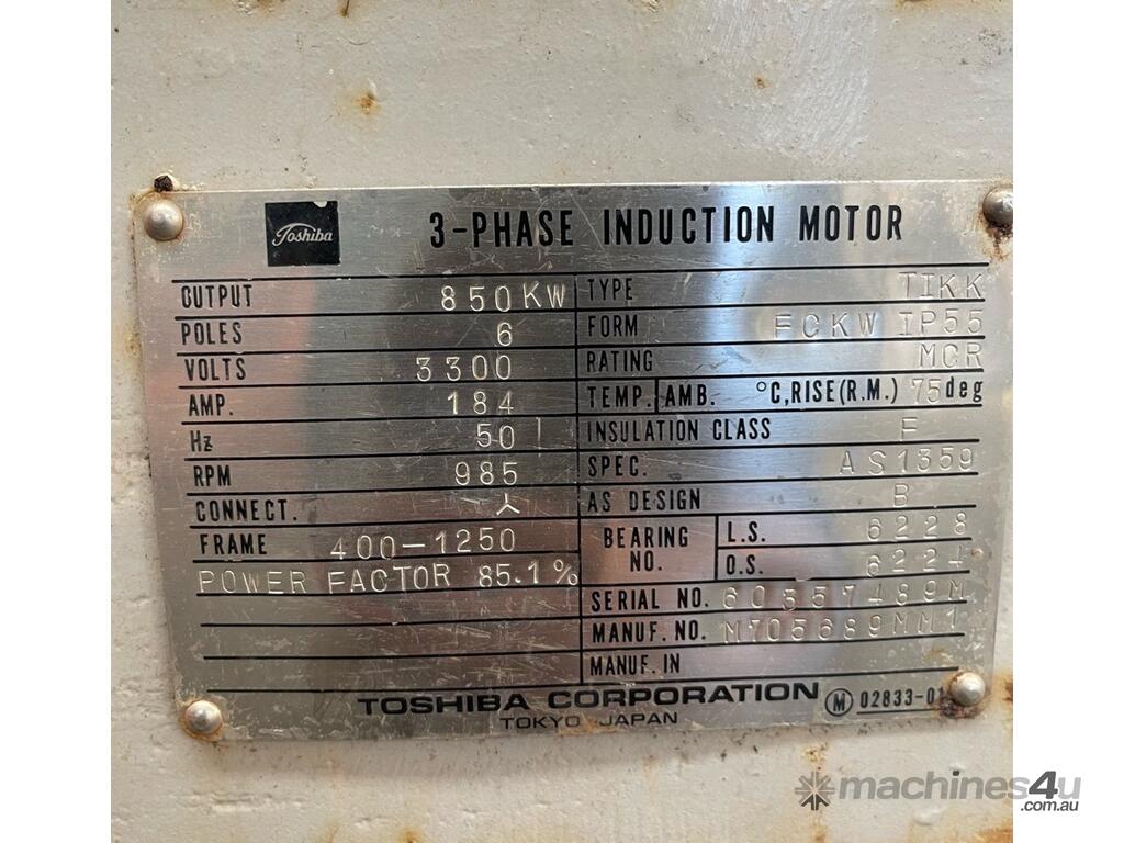 850 kw 1140 hp 6-pole 985 rpm 3300v 3.3kv Foot Mount 400 frame AC Electric Motor Toshiba Type TIKK FCKW IP55 Spec AS1359