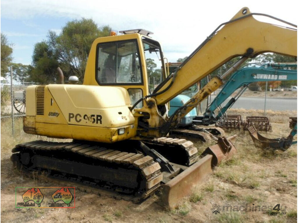 Komatsu PC95R Excavator ~ Has broken slew motor ~ Missing some rams and bucket linkages ~ Also missing glass door ~ Starts and runs ~ Track gear is in good order ~ Selling as is