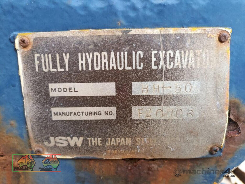 JSW BH-50 Excavator ~ Quality Japanese built machine with 6cyl Deutz engine (95Hp) ~ This older machine works, but needs a plate welded on the floor to hold the controls – easy job if you can weld ~ Track pins are well worn ~ No major oil leaks ~ Key not working starter, but starts easily with screwdriver on starter mtr. ~ Engine runs sweet, no apparent issues ~ A cheap machine for the right person.