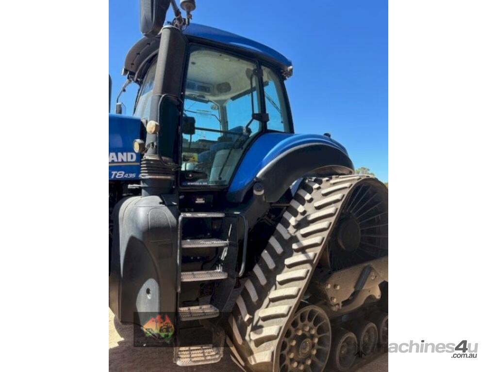 * T8.435 track tractor 435max HP with 3pl * Power shift transmission * Front axle suspension * 4 sets of hydraulic remotes + power beyond * Tyres - 620/75R30 Approx 70% * Tracks approx 600mm 70% * tractor is on 3m * 4666 Engine hours * serviced by New Holland dealer prior to being traded This unit is in fair condition and set up for 3 meters. It is an ideal second tractor or a primary tractor for 3m traffic requirements. ( NOTE ONLY 2% BUYERS PREMIUM ) Don't miss out Inspection recommended Contact Raymond Cossar Office: E: Raymondcrealmgroup .realmgroup ( Finance Available .payintime ) Don't miss out Inspection recommended Contact Rob Dingle - : robdrealmgroup ( Finance Available .payintime )