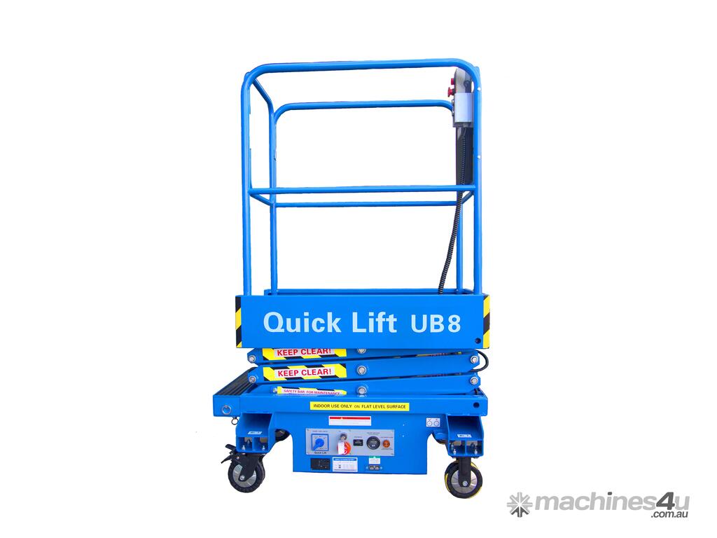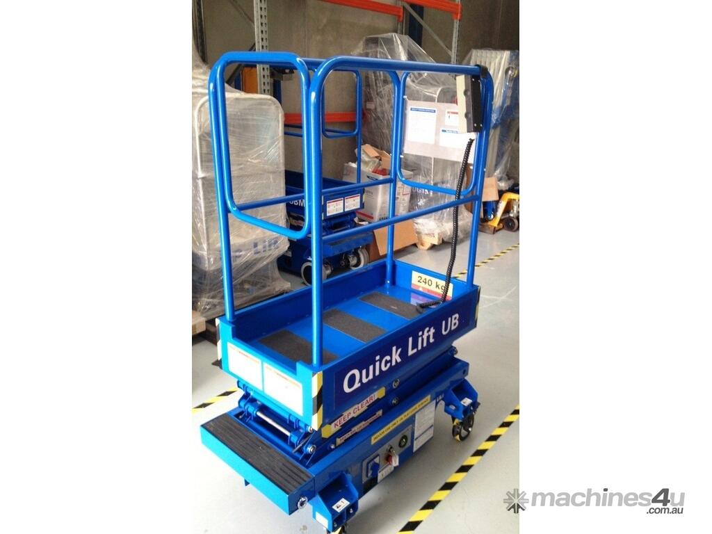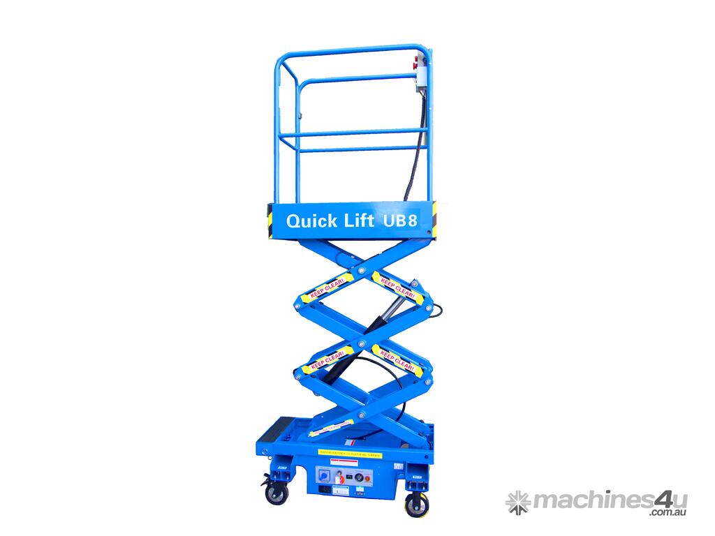 Manually-propelled UB Quick Lift mini scissors are ideal for workers requiring safe, vertical access at heights up to 5.9 metres.