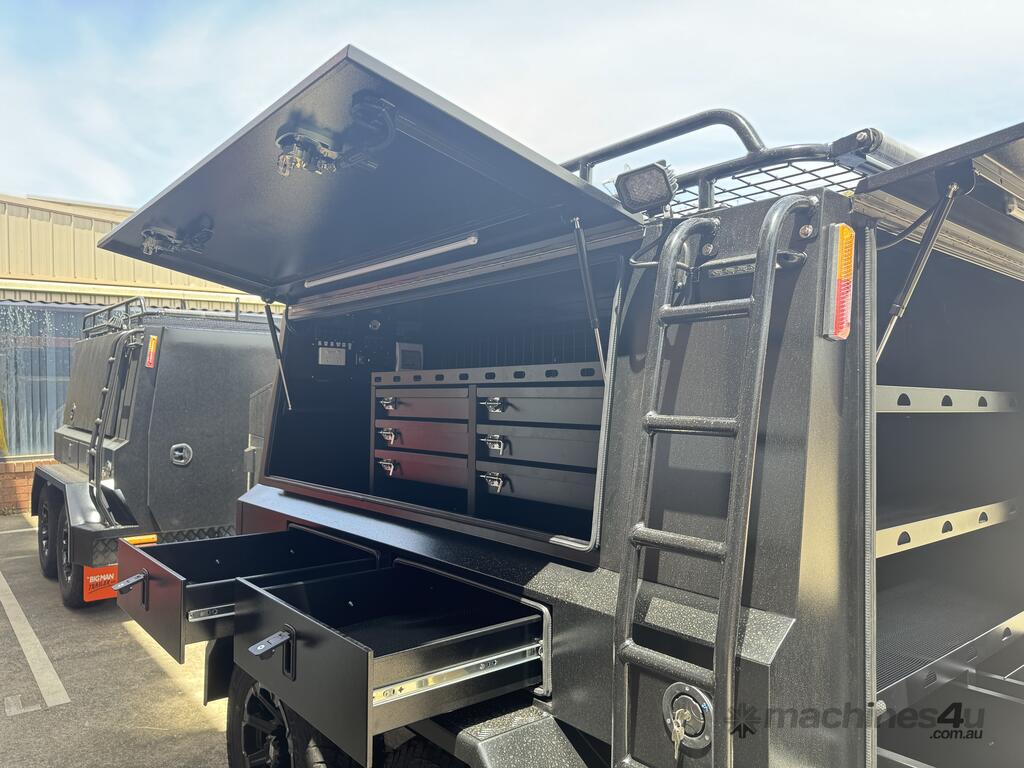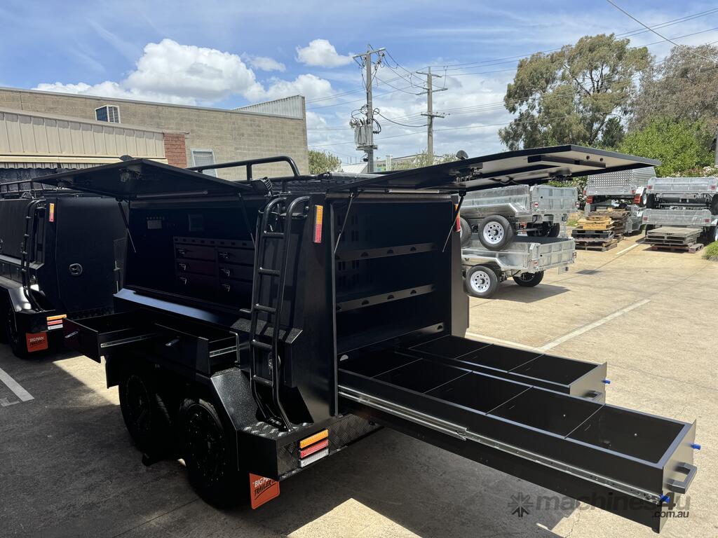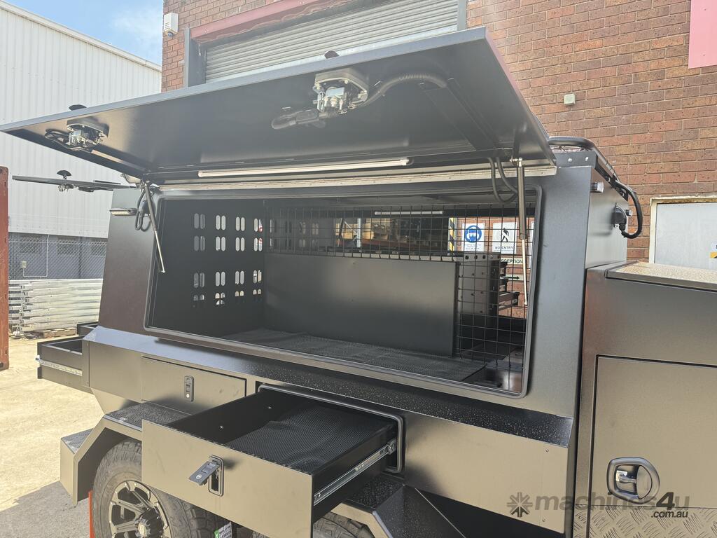 The 8x5 Trailer for Tools with Drawer – Black is built for tradespeople who demand maximum storage, on-site efficiency, and reliable durability. Designed with spacious compartments, pull-out drawers, and a 50L fridge slide with fan, this trailer keeps your gear organised and ready for work.