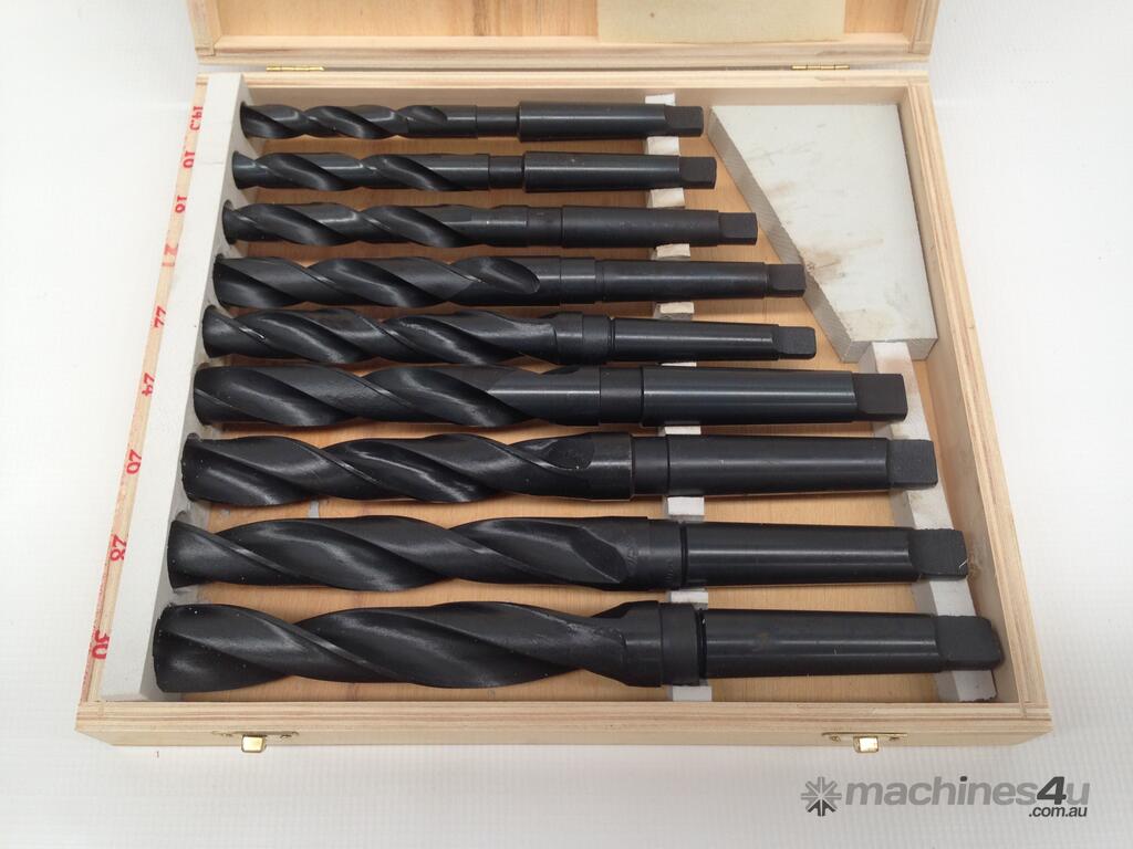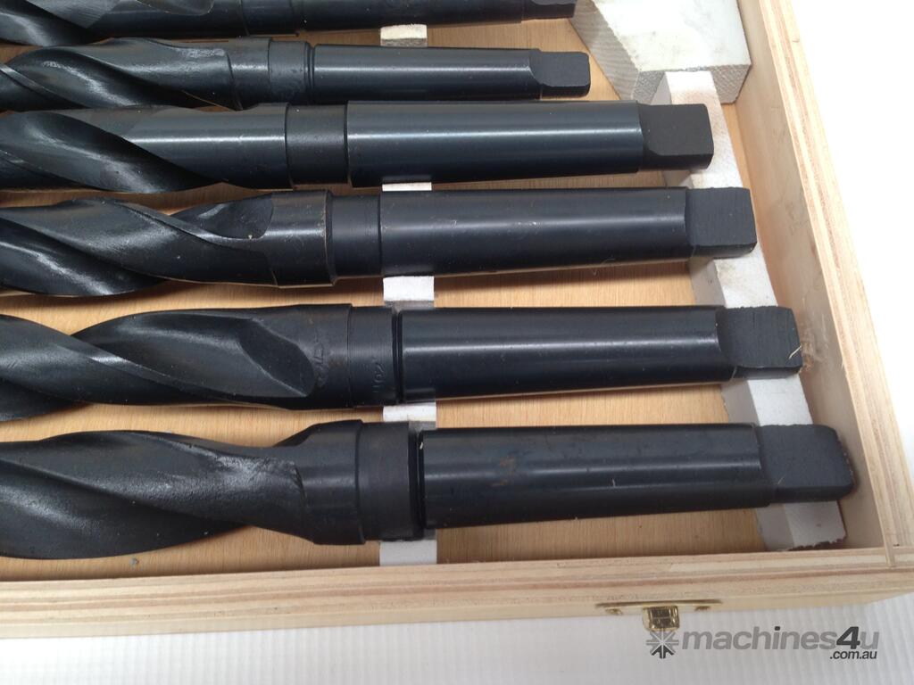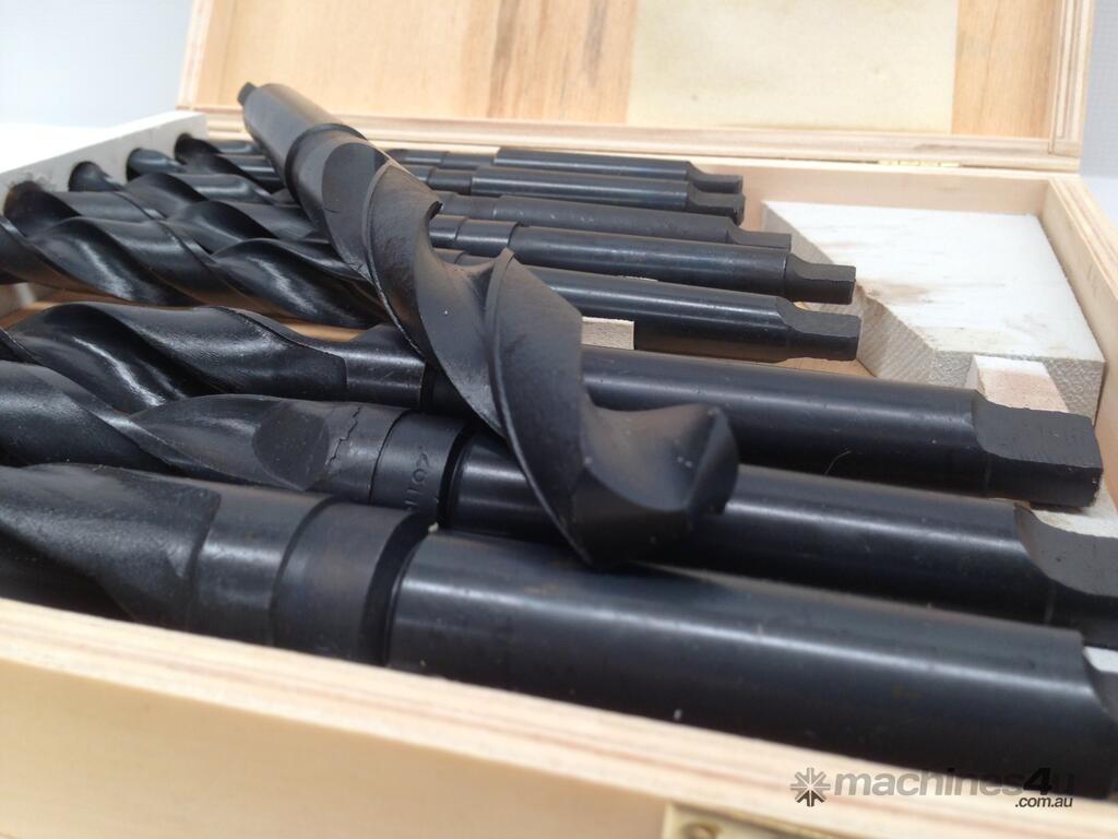 This Morse Taper shank set includes a great selection of usefull drill sizes from 14.5mm - 30mm. Precison ground HSS drill bits . This set is DIY quality and comes in a fold out wooden case.
