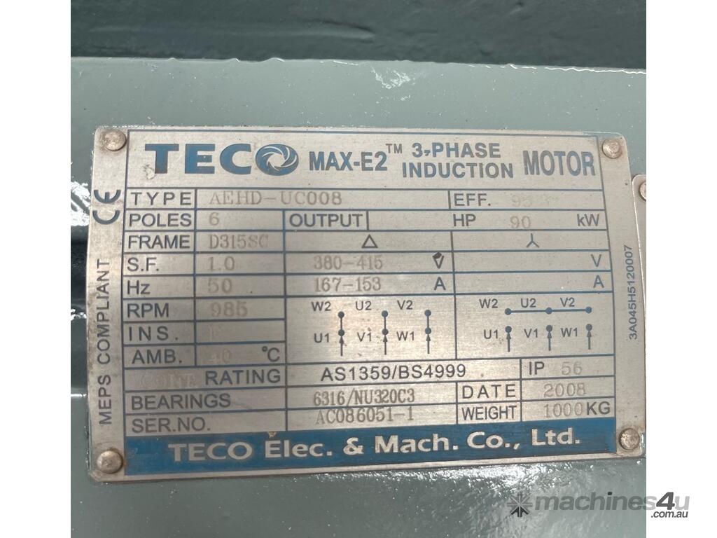 90 kw 120 hp 6-pole 985 rpm 415 volt Foot Mount D315SC frame Mining AC Electric Motor TECO Type AEHD-UC008 reconditioned
