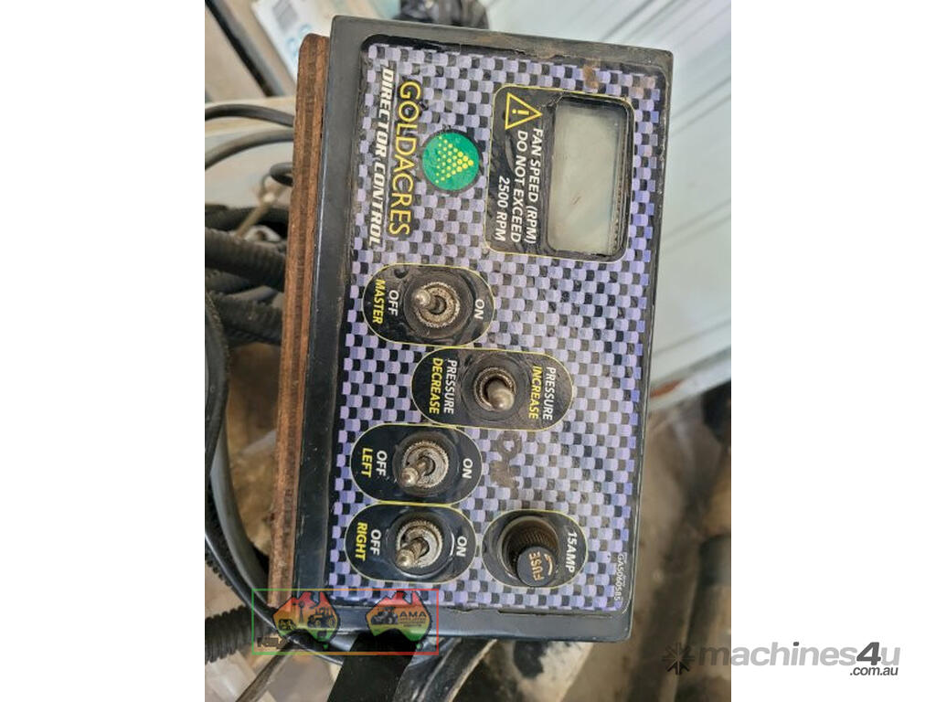 Goldacres 3000 Twin Canopy Vineyard Sprayer ~ With 14 flexi-adjustable heads, each with multiple nozzles ~ PTO driven 4 diaphragm pump ~ Hyd drive fan ~ In cab controls ~ Not used for 2 seasons ~ Replaced due to upgrade ~ Believed to be in working condition. ~ Could easily be converted to Boom Sprayer of Fire Fighter.