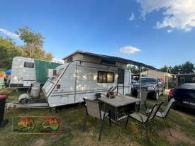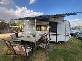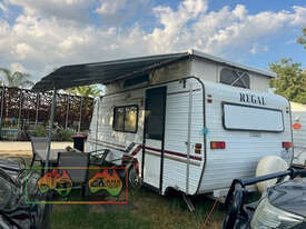 1994 Regal Caravan with Awning. Approx 18ft. Has double & single beds, Air-conditioned comfort, Fridge, stove, sink etc. Gas bottle included. Good tyres, Brakes & Lights. (VIN: 6D9T21RTAT2013073) A good solid & comfortable van.