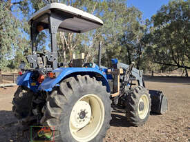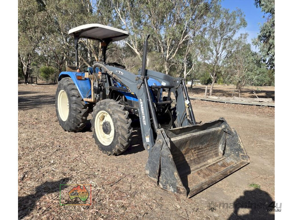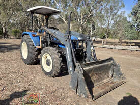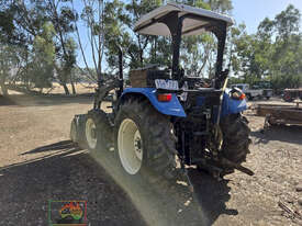 New Holland TT4.65 Tractor with FEL ~ 2.9 Ltr, 3-cyl TI diesel engine ~ 65 Hp ~ 12 x 12 Mechanical Synchromesh transmission ~ 1,174.3 Hrs ~ 1 Owner tractor ~ Quicke X26 Front end loader with 4-in-1 bucket ~ ROPS with Fibreglass roof ~ 3pl, PTO, drawbar & single remotes ~ Goodyear Tyres, F=70%, R=80% ~ Good practical utility tractor ~ Suit NEW BUYER.