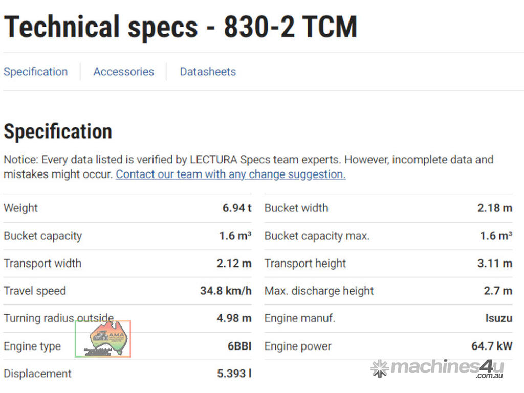 TCM 830-2 Front End Loader ~ 4WD Articulated ~ 6 Cylinder Isuzu Diesel ~ 2,332 Hrs (on clock) ~ Enclosed Cabin ~ Firestone 16.9-24 Tyres all round ~ Serial Number - 63803553 ~ Engine Number - I-21700-248