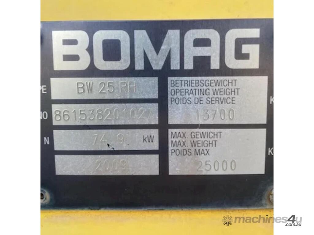 2009 Bomag multi tyre roller ~ 3,767hrs ~ 28,000 tonne gross ~ Both left and right steer ~ Good working condition ~ e stops.