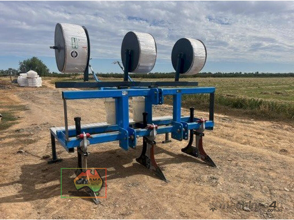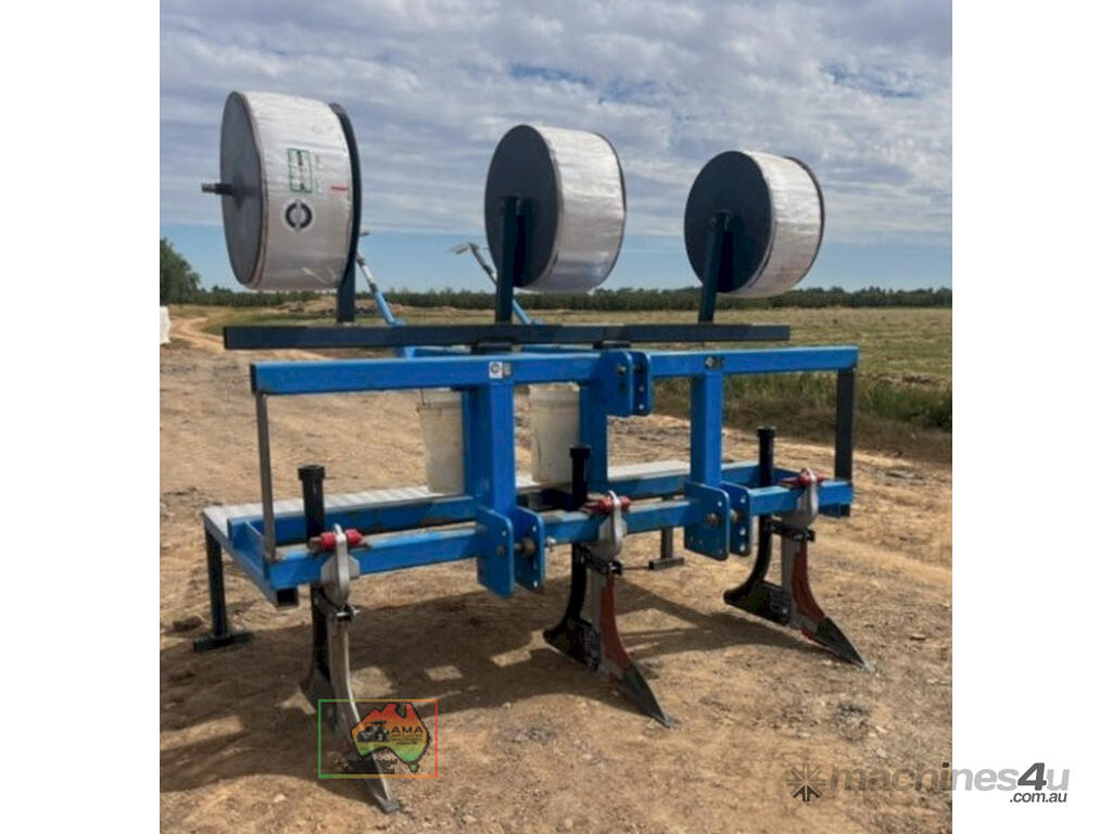 3pl Tatura Engineering T-tape Layer ~ 3 row Yeomans Ripper with pipe layer tubes ~ Specifically engineered & built for laying underground irrigation dripper tape ~ Suitable for Market Garden row cropping &/or Broad acre underground irrigation.