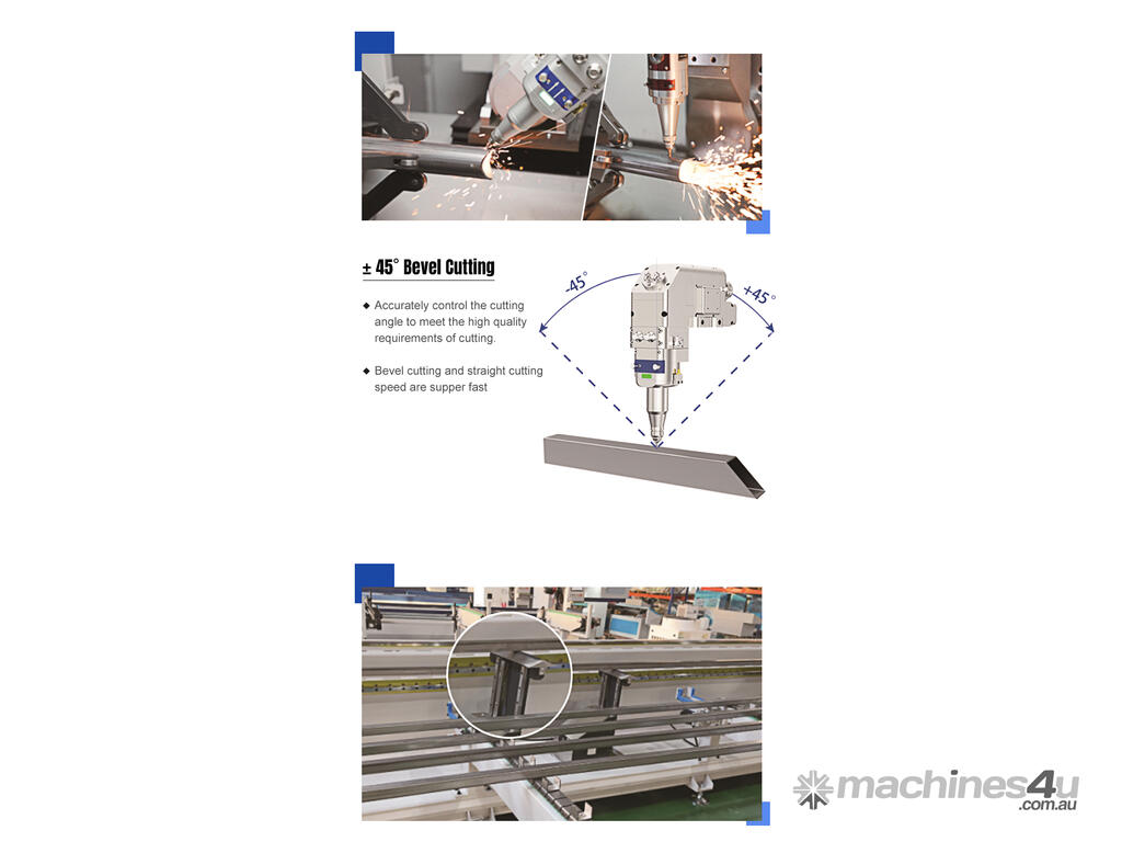 Rapid Engineering, an exclusive agent for Australia, proudly introducing Quantum Laser A24-C, 240mm Bevel Cutting Tube laser including 8m semi-automatic loading rack equipped with servo following supports and 4000mm closed type semi-automatic servo following unloading table.