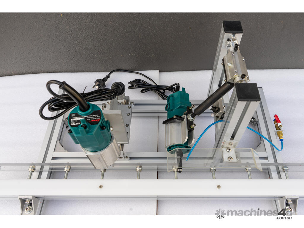 It's Australia's iconic 45 degree angled edge trimming machine. Created and assembled from our Melbourne warehouse, the Aaron AETM-I 45 Degree Angle Edge Trimmer can trim inclined edges and partially-inclined edges. Perfect for modern, handle-free, finger-pull doors and drawers.