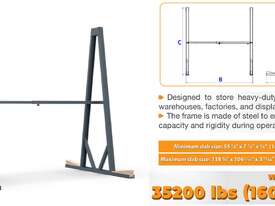 Truck A-frame is a new model with innovative dimensions and specifications to store large slabs efficiently in many workplaces.