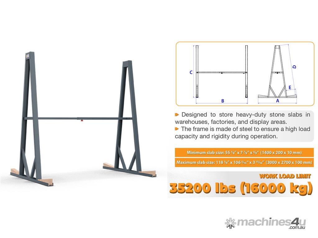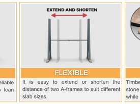 • The A-frame design provides an ideal angle for slabs to lean securely and safely against the frame.