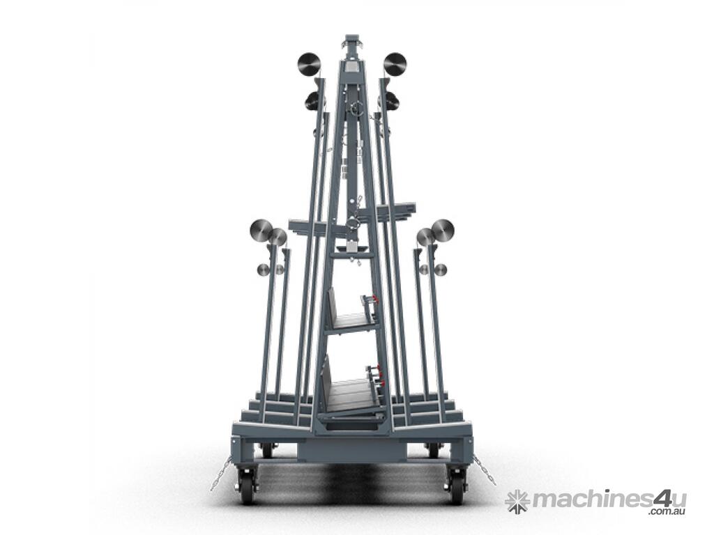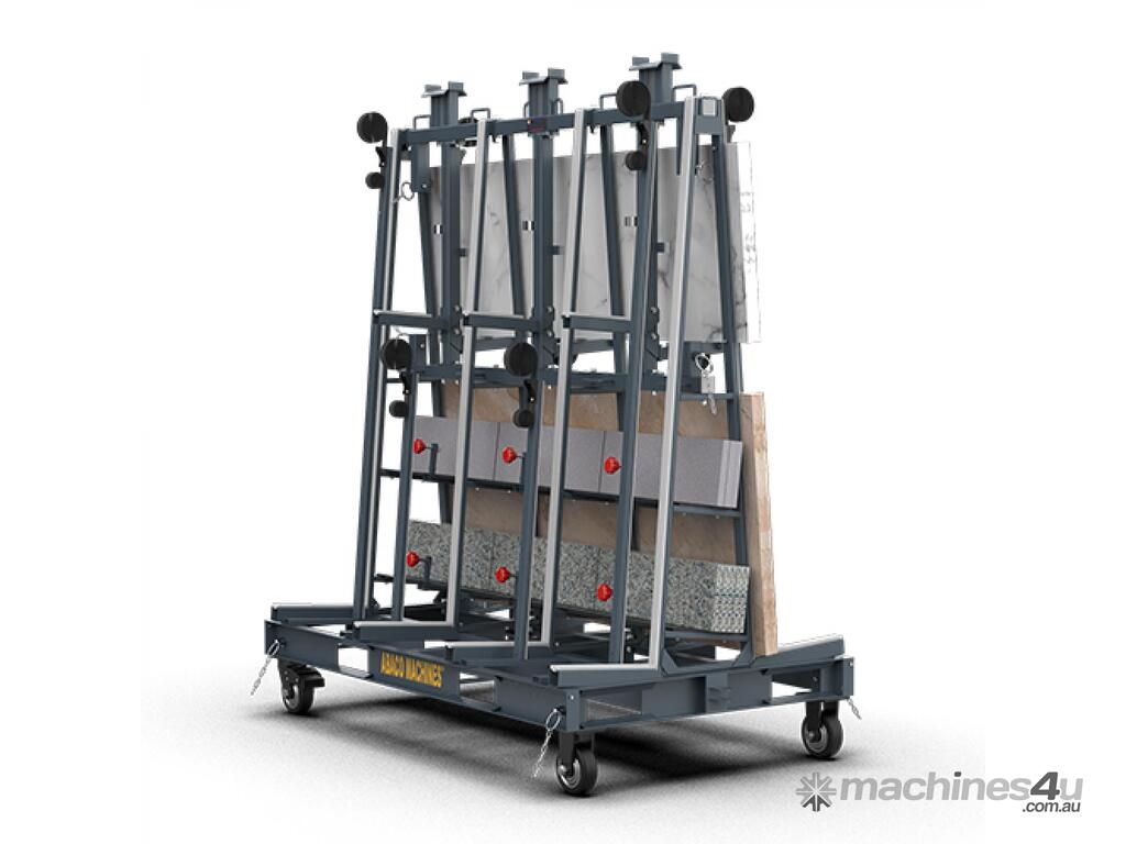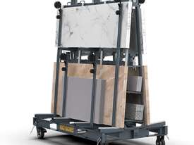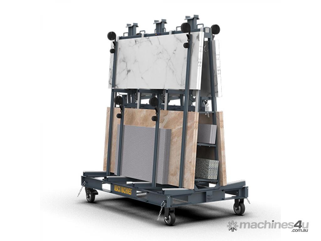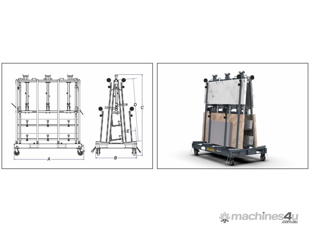 The innovative dimensions and specifications of the Transport A frame provide adjustable and handled features for managing different sizes of stone slabs.
