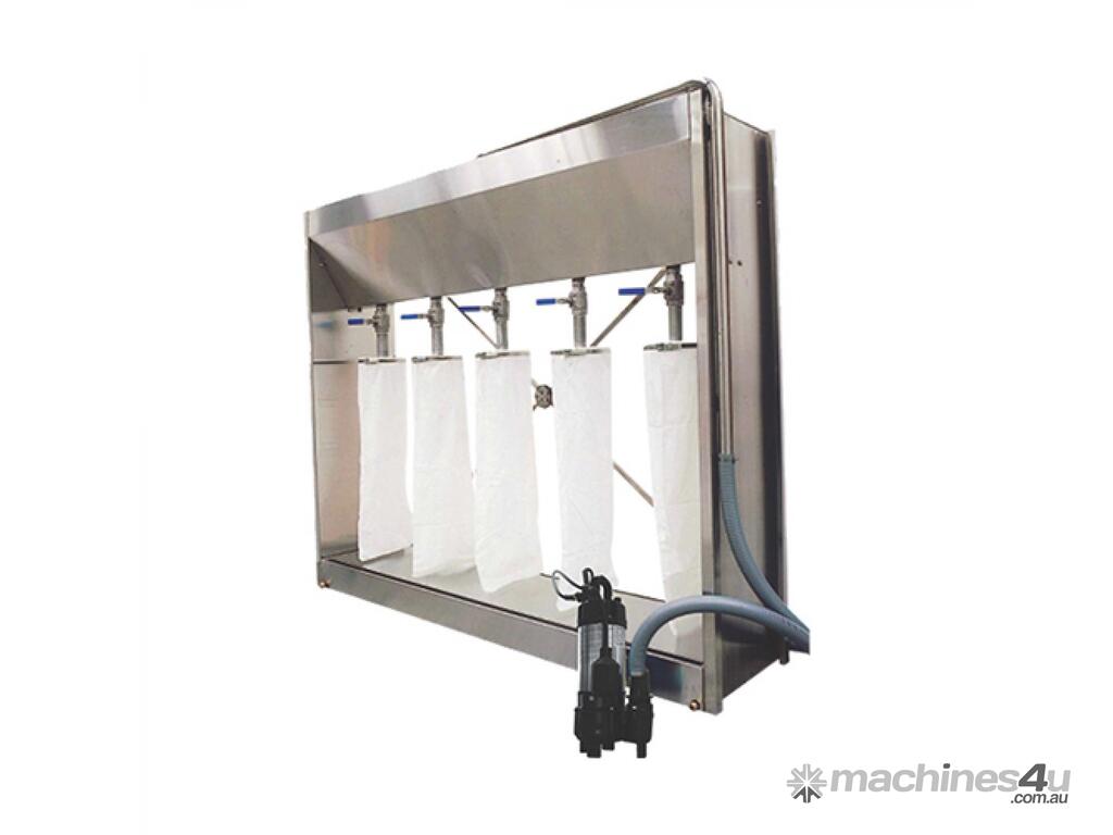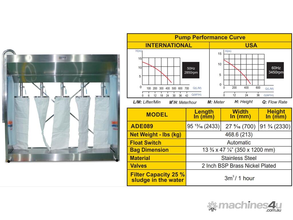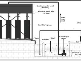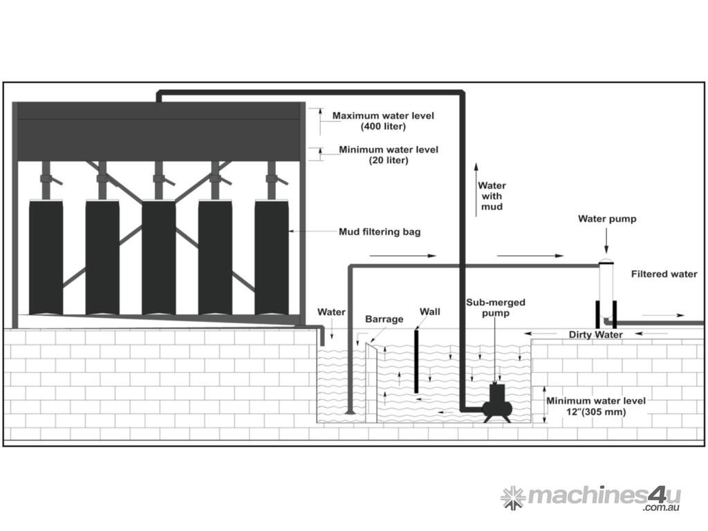 • Constructed of Stainless Steel and consists of four basic components: pump, mud holding tank, clean water tray, and filter bags.