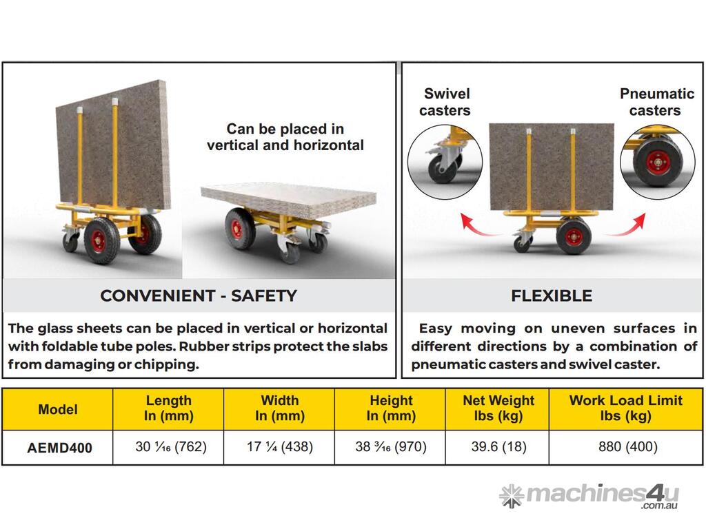 Moving Dolly with a high workload can handle stone slabs up to 880 lbs (400 kg)