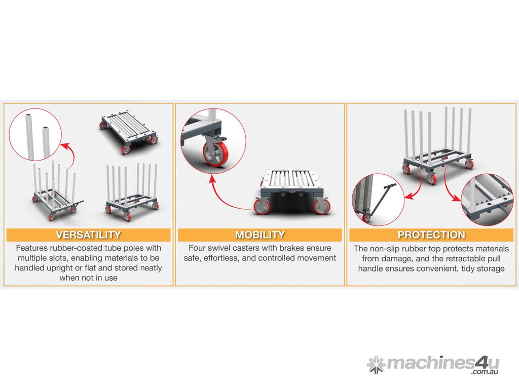 • Transport Cart features an anti-slip rubber surface that firmly secures slabs and prevents surface scratches.