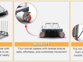 • Swivel casters (including brakes) deliver stable, controlled movement on rough or busy sites.