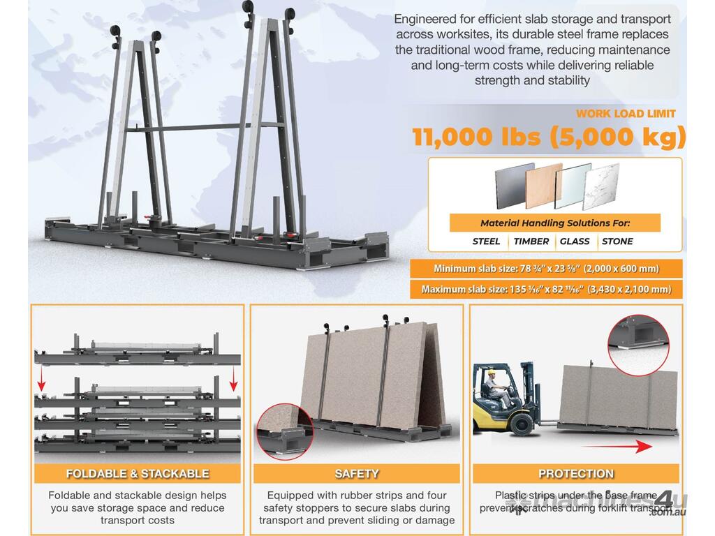 • Enhanced with rubber strips and ratchet securing bars prevents chipping and damage to your slabs.