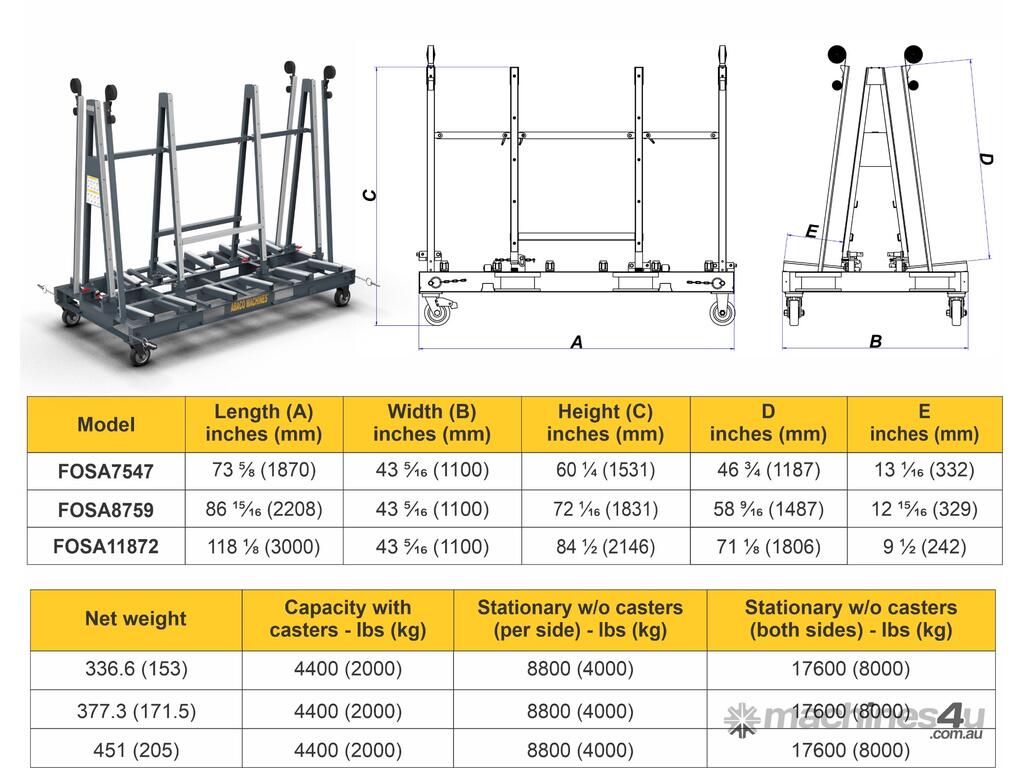 The innovative dimensions and specifications of the Folding A Frames provide effective and productive features for managing large sizes of stone slabs.