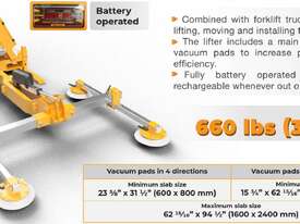 Easy to transport large-sized stone slabs with Abaco Forklift Power Vacuum Lifter.