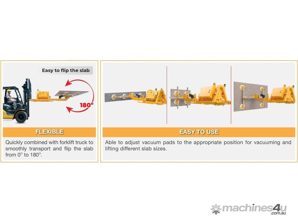 The lifter is designed to combine with a forklift truck to lift and move stone slabs easily.