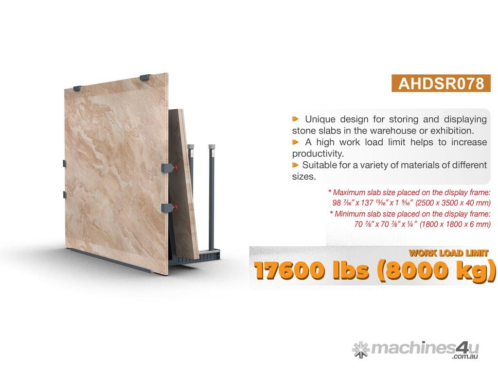+ The Slab Display Stand is made of steel for a rigid structure with a load capacity of up to 17600 lbs (8000kg).