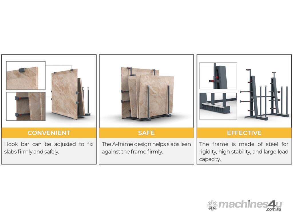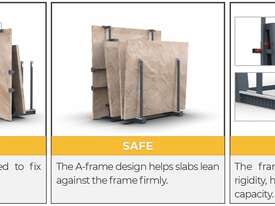 + A simple A-shaped frame provides reliable and a versatile function to allow the slab to lean against the A-frame securely without slipping.