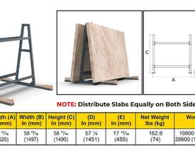 This Storage Frame has dimensions and specifications that offer unique and special benefits for storing stone slabs of multiple sizes in confined areas.