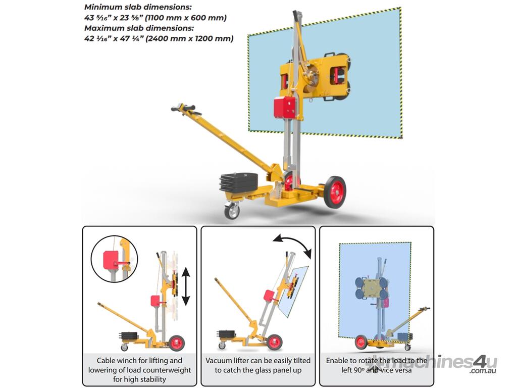 • The Manual Vacuum Lifter has compact dimensions and features to handle and transport glass sheets in a confined workplace