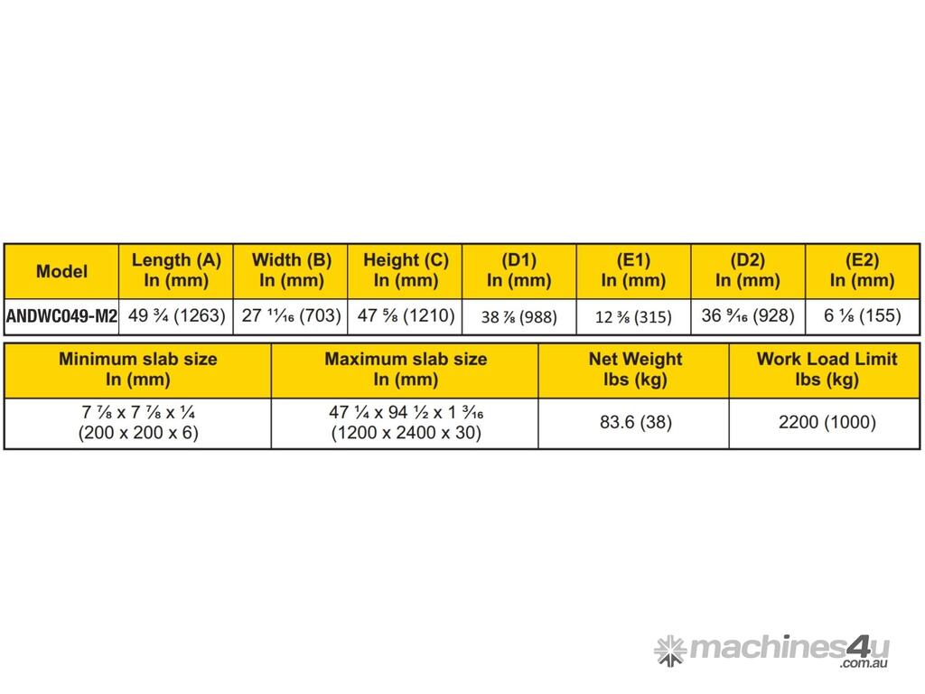 • Crossbar with two adjustable height levels to place and move many slab sizes.