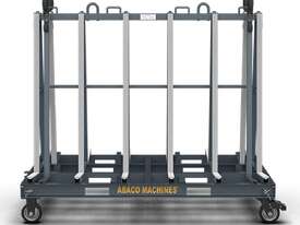 Ideal A-frame for stone and glass slab transportation in any workplace. Plenty of rubber strips and four ratchet security bars to help keep slabs steady and safe. Usable space inside standing parts of the frame to store tools and accessories. It has 4 casters for easy moving, two with brakes to lock the frame steady to the ground when needed. Casters can be replaced by quick mounting/release pins, dramatically increasing the work load limit. A-Frame has base slots and upper bar eyelets to lift with a forklift truck or an overhead crane.