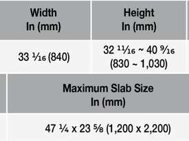 • Processing Table can tilt at an 8? angle from the vertical, enabling quick and safe adjustment of slabs from vertical to horizontal positions.