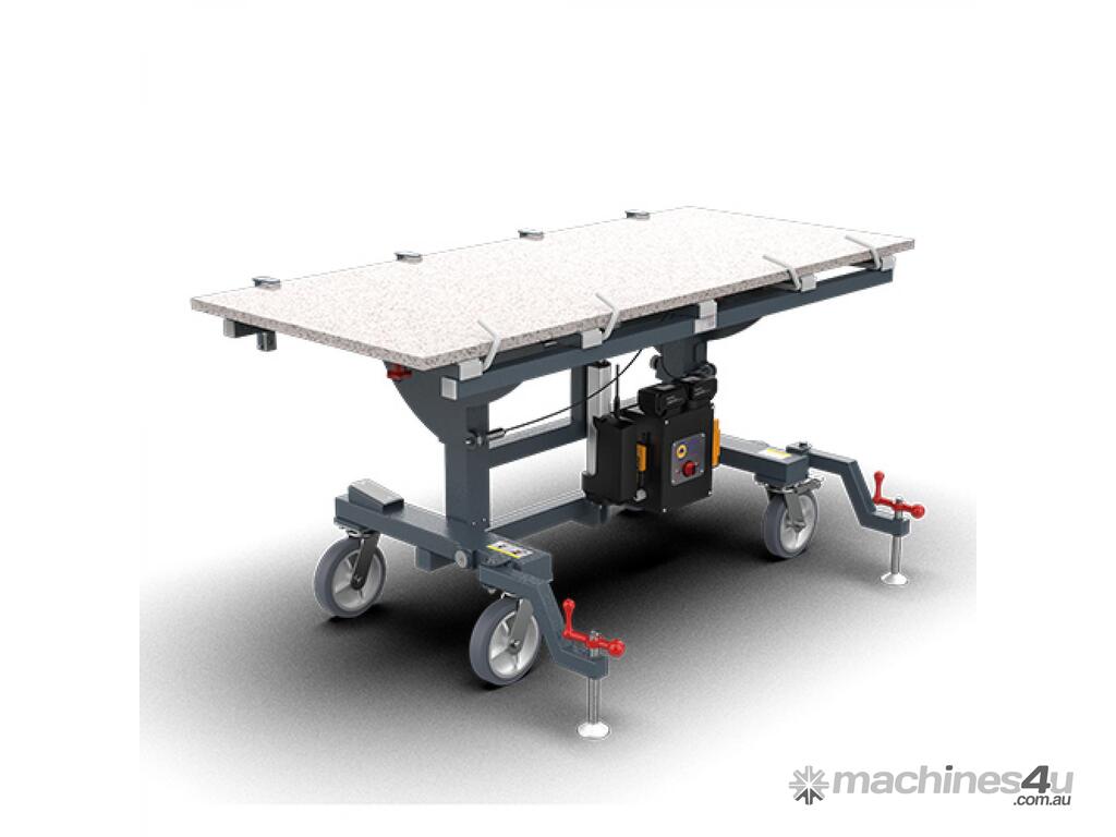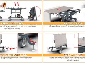 Abaco Power Kitchen Processing Table PKPT6340-PRO is specifically designed to move, lift and lower slabs during kitchen installations. This user-friendly table provides a convenient and powerful solution for handling slabs of various sizes with ease. \