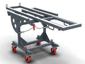 - Four heavy-duty casters provide smooth transporting in and out of a processing booth and also around the workshop.