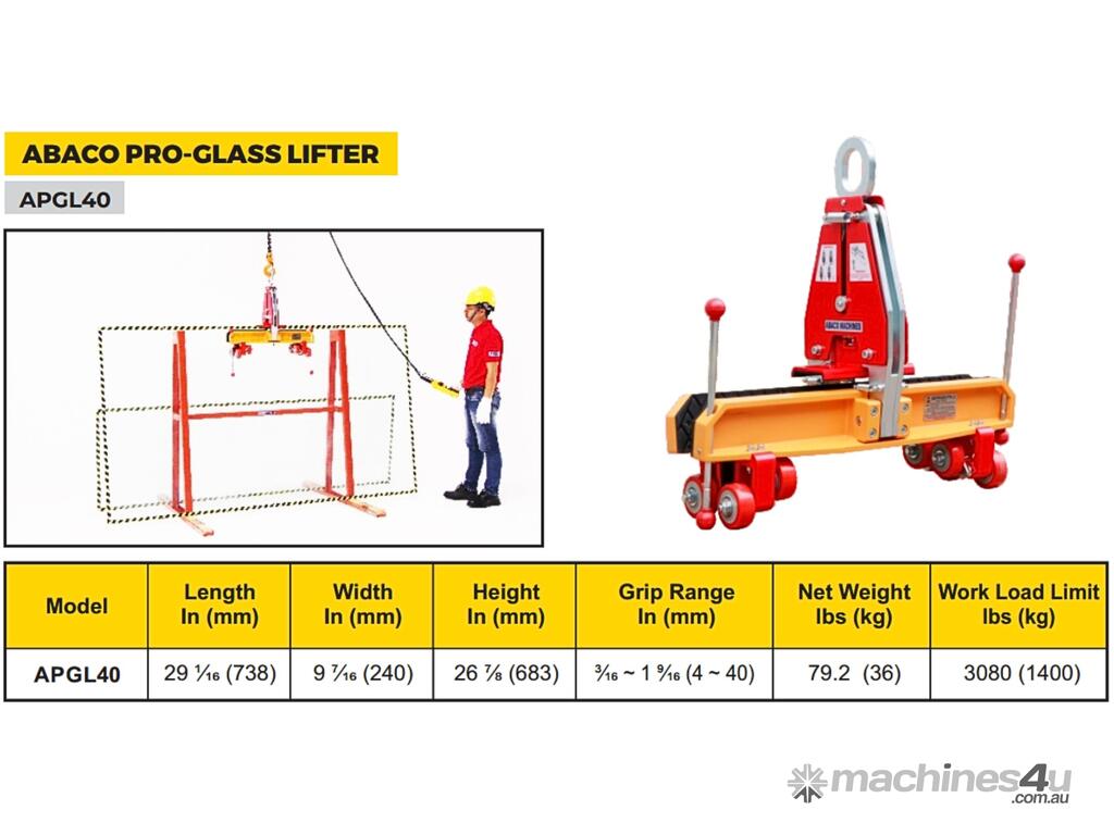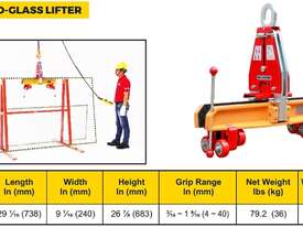 The Glass Lifter contains dimensions and specifications offering special qualities for handling different sizes of glass sheets in confined locations.