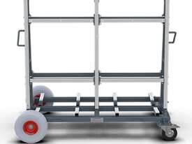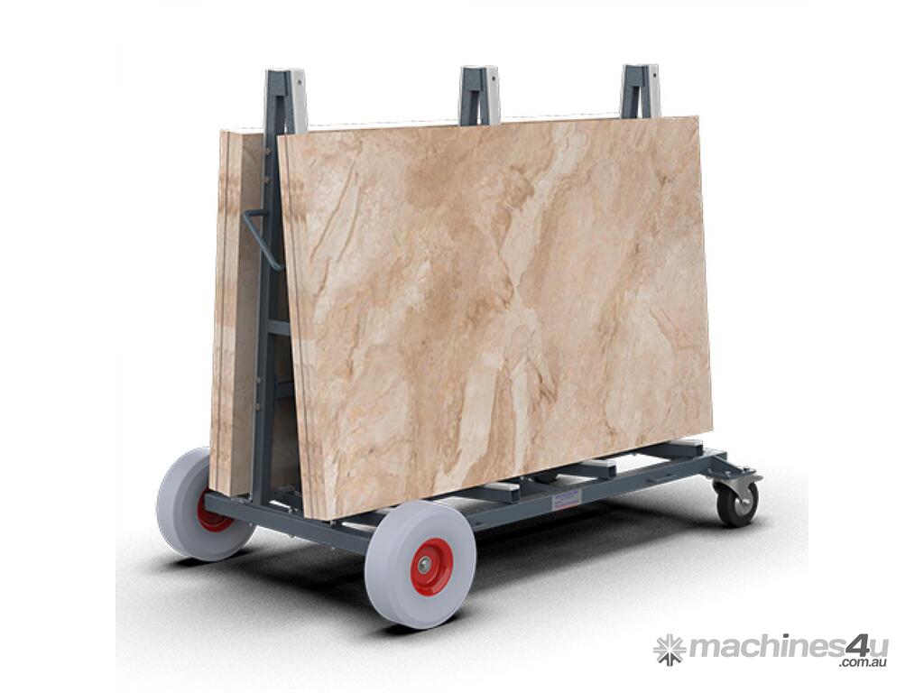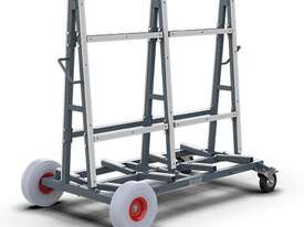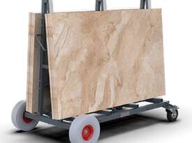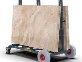 Abaco Qli Double Sided Slab Buggy has a simple and compact design for transporting stone slabs and other sheet materials around factories or construction sites.