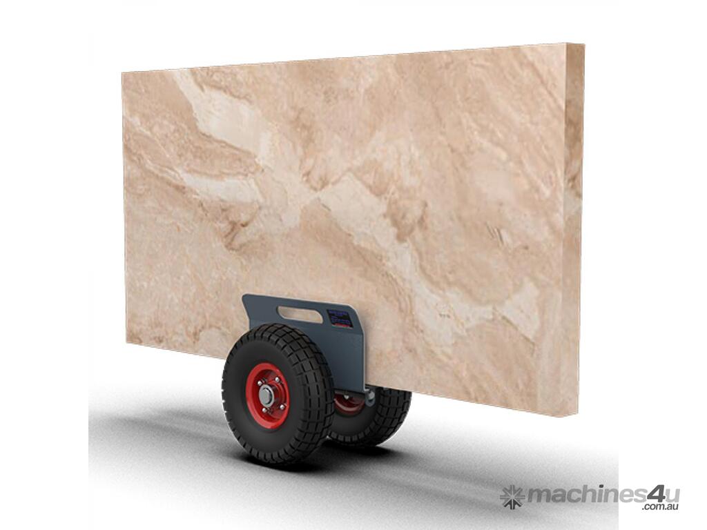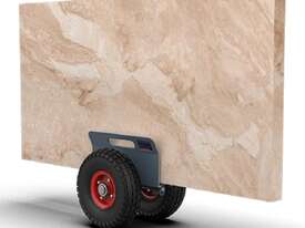 Abaco Self-Locking Dolly is designed for moving stone slabs at work sites. It is made with pneumatic tires to make transporting the slab easier on different moving surfaces.