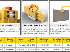 Designed with extra-wide jaws, the device enhances effectiveness when lifting fragile slabs of bigger sizes.