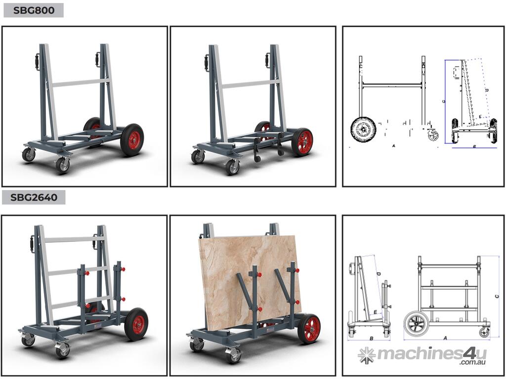 SBG800P, SBG800S, SBG2640P, and SBG2640S are models from the Slab Buggy series. These products reach what the consumer is considering and provide alternate solutions in dealing with heavy-duty stone slabs.