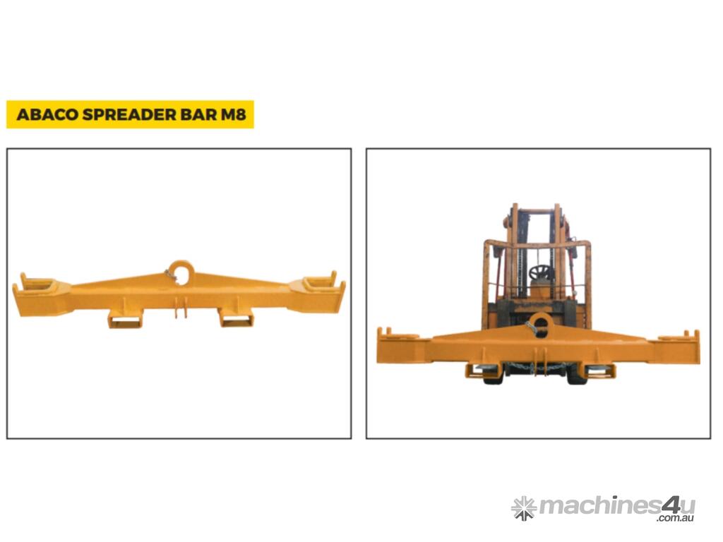 Abaco Spreader Bar M8 is a forklift attachment used to lift and move large slabs with better balance and safety. It works by connecting to chains and lifters to support heavy loads across a wider span.