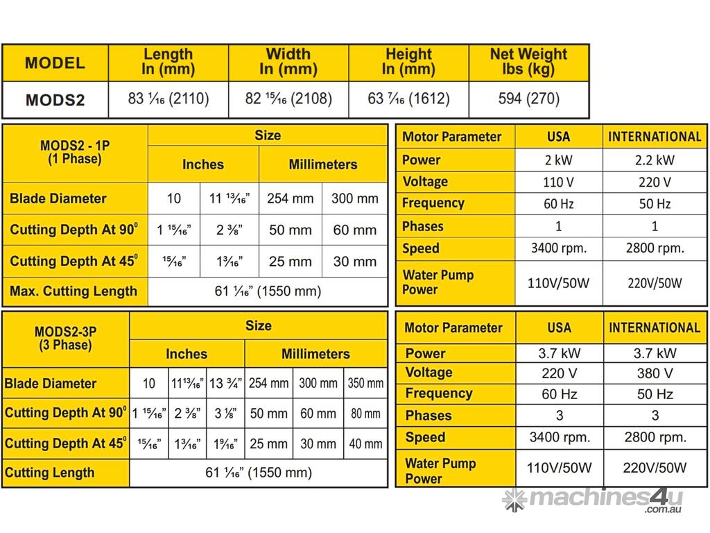 Stone Saw features special dimensions and specifications for dealing with various stone slabs.