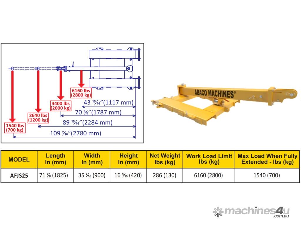 Technical specifications of Abaco Swing Arm Forklift Boom