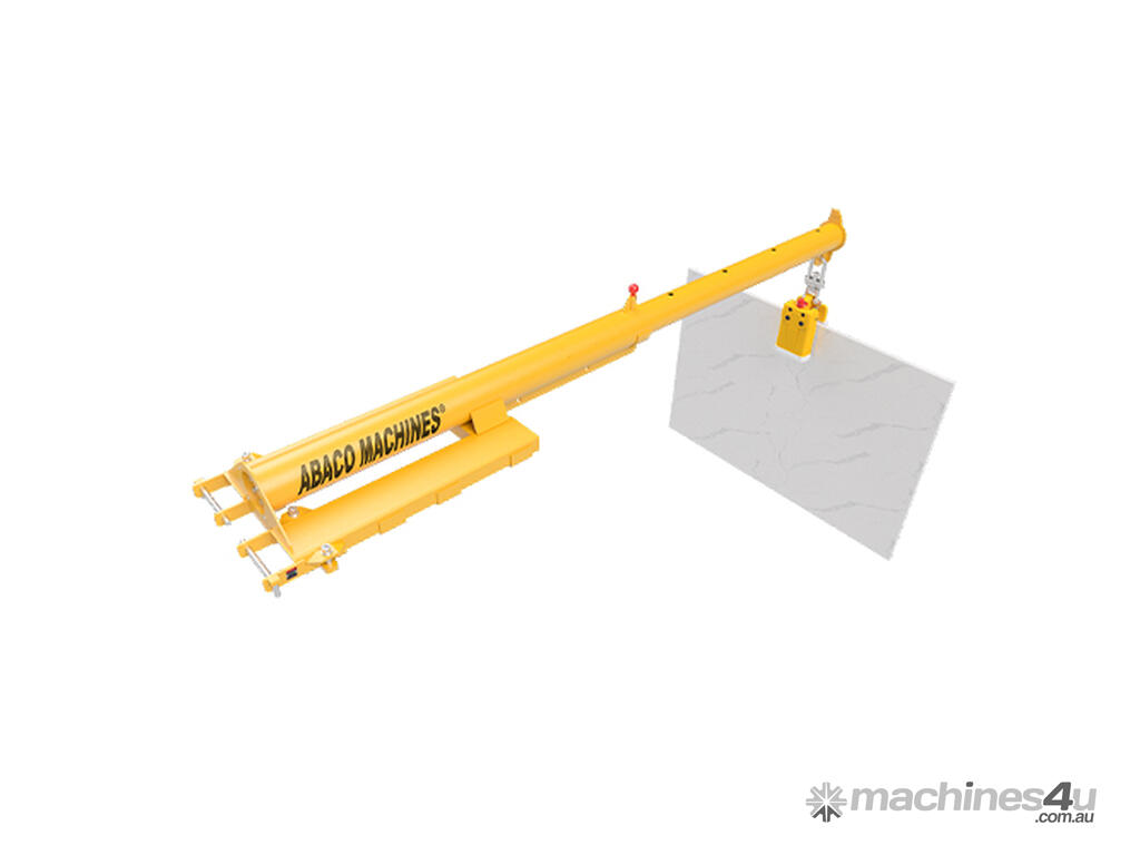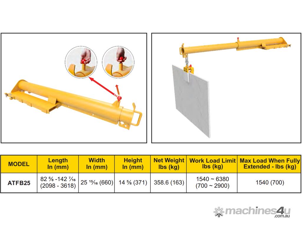 Telescopic Forklift Boom (ATFB25) is used to hang lifting equipment or for any other hanging purpose. It are Forklift Attachments that assists in minimizing the time and labor used for lifting and maneuvering heavy-duty stone slabs.