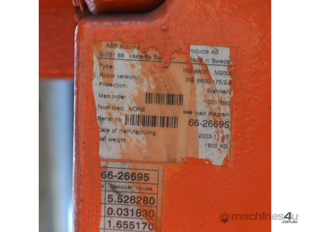 ABB IRB6600-175/2.55 M2000 175kg 2.55m Robot + extra axis & Teach Pendant :      $19,727 AUD($21,700 Inc. GST)