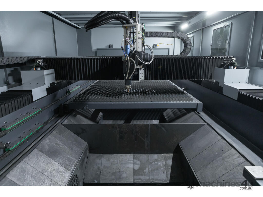The ML-X series is a very well optioned up machine with a change table. This machine is ideal for a company wanting a work horse and the ability to upgrade many features and add automation as needed. The ML-X Series is fitted as standard with a Boci cutting head, Hypcut twincut S80 dual screen controller, nozzle cleaner and pneumatic safety door at the rear of the machine.