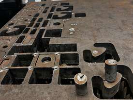 -Pneumatic locking table pics to eliminate any table movement while cutting, this is also fitted with a sensor that if the pins are not in position the cutting will not start.