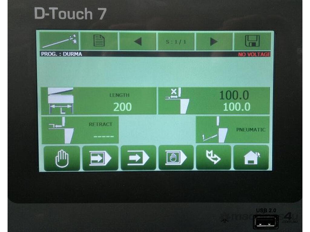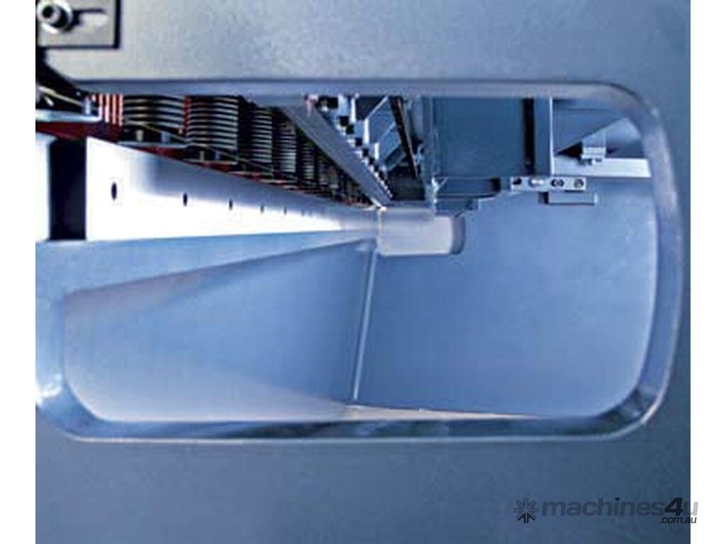 SBT series guillotines incorporate the new DT-7 Large colour touch screen controller. The controller allows for rapid data input with unlimited user programs and steps,external backup and restore via an inbuilt usb port.