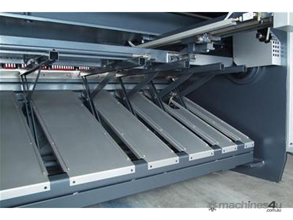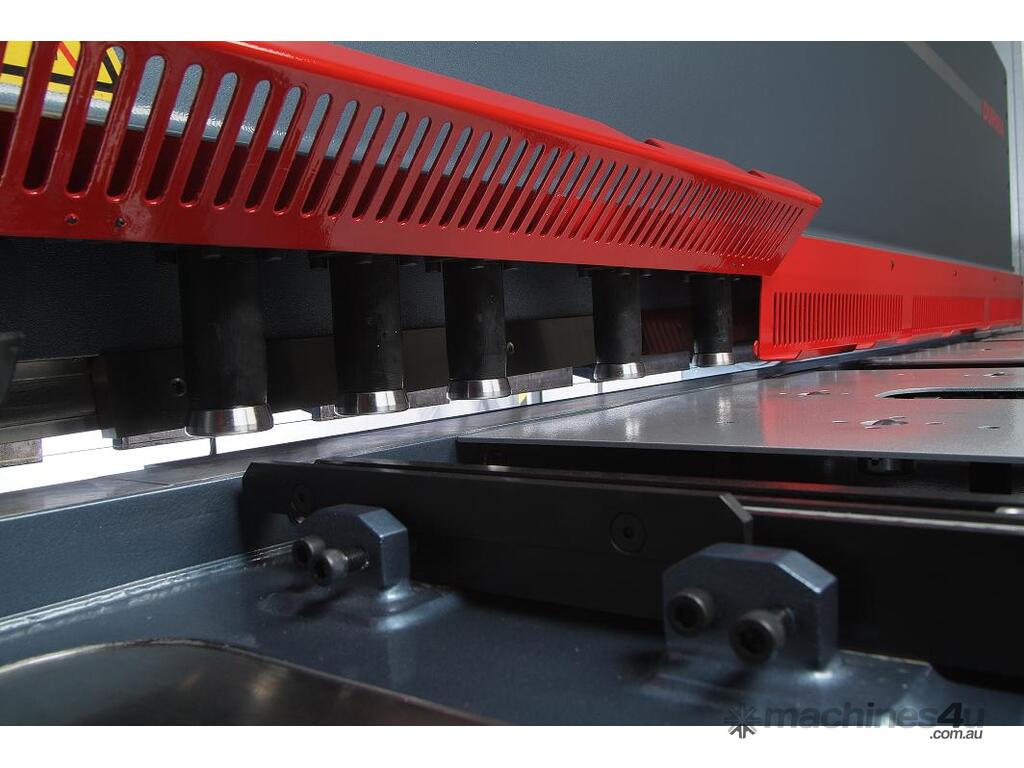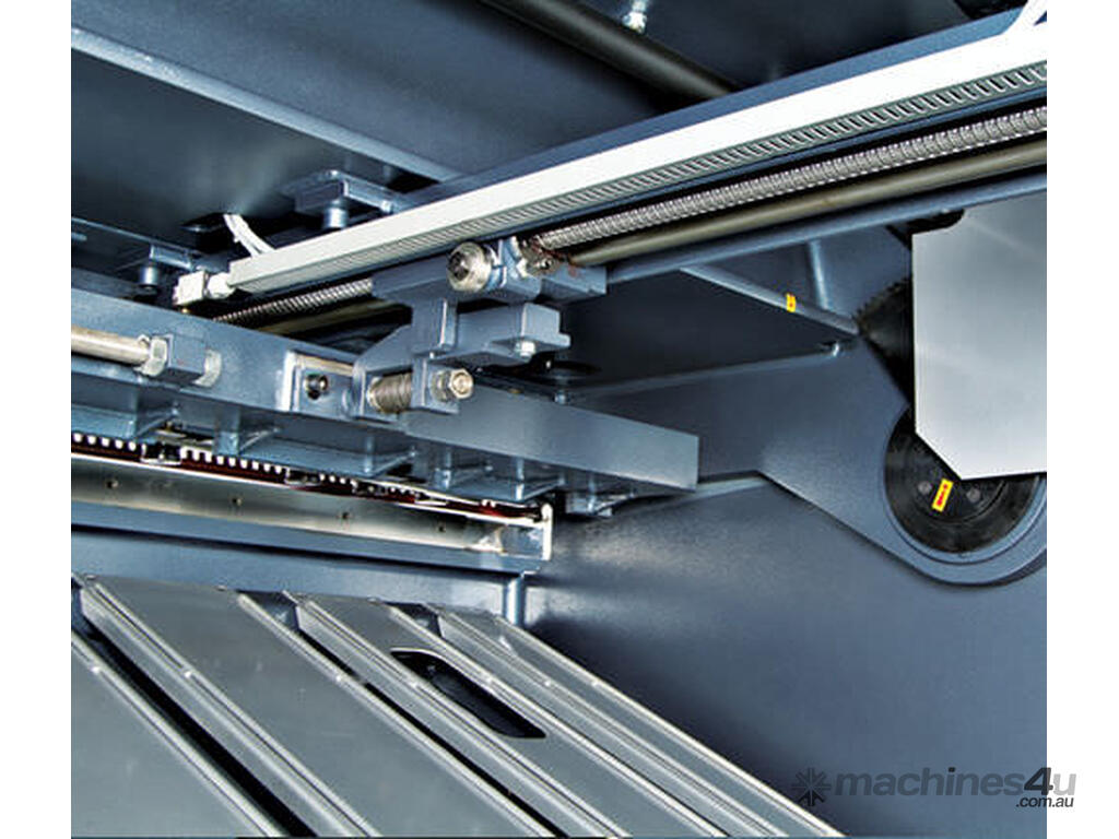 The Durma swing beam Touch Series guillotines are constructed as a very rigid box beam. This allows the rake to be maintained at a low angle to optimise cut quality. The swing beam containing the top blade pivots on large spherical roller bearings. The minimal clearances of these quality bearings coupled with the rigid box beam and table design maintains a constant blade gap over the entire cut length providing excellent cut quality.